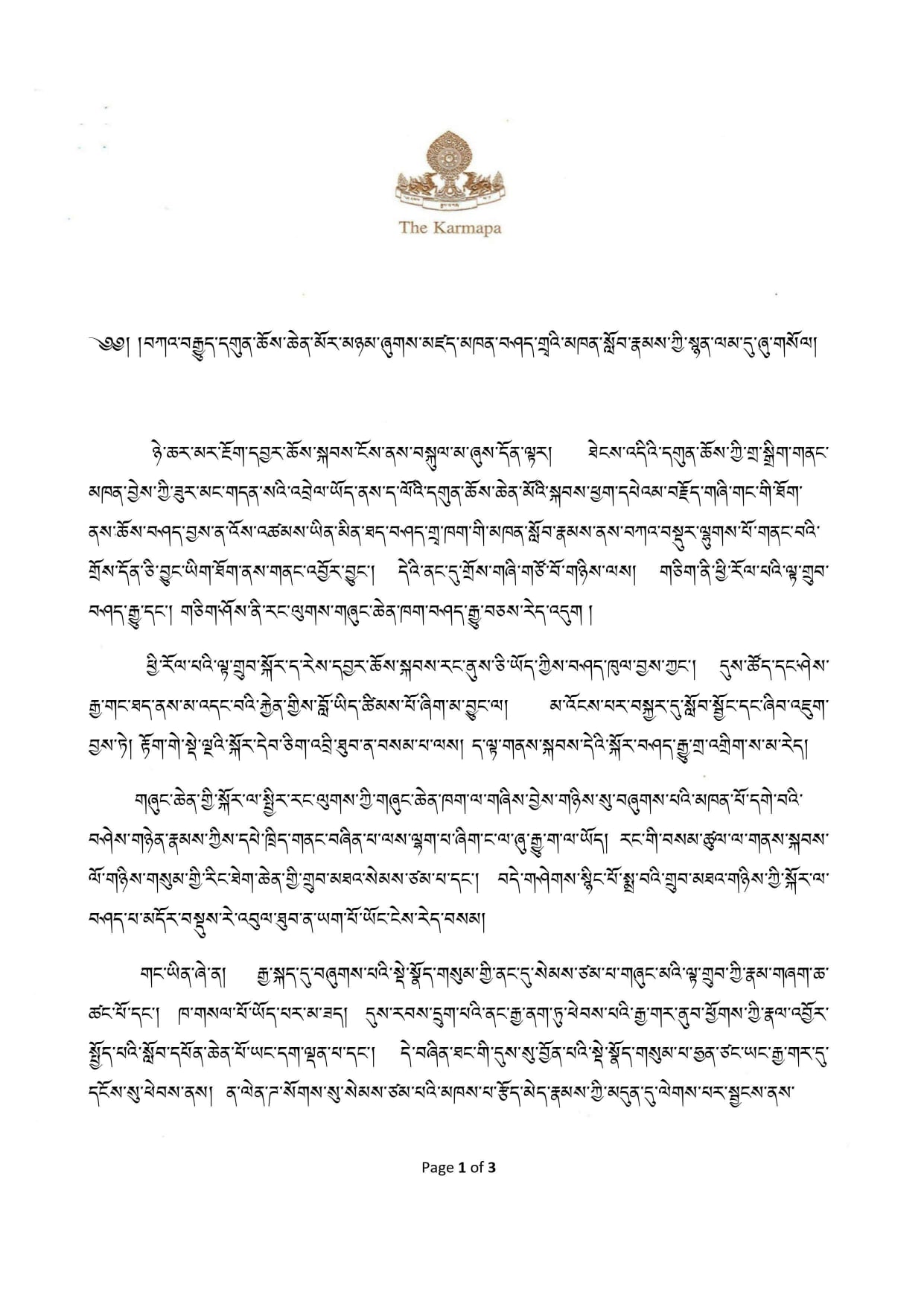 ཀརྨ་པ་ཨོ་རྒྱན་ཕྲིན་ལས་རྡོ་རྗེར་འབོད་པས་སྤྱི་ལོ་ ༢༠༢༡ ཟླ་ ༡༠ ཚེས་ ༡ ཉིན་ཕུལ།